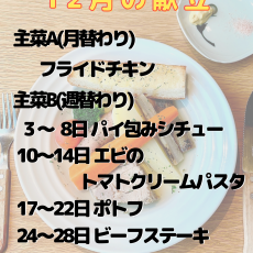 • MINDEランチ 12月メニュー表